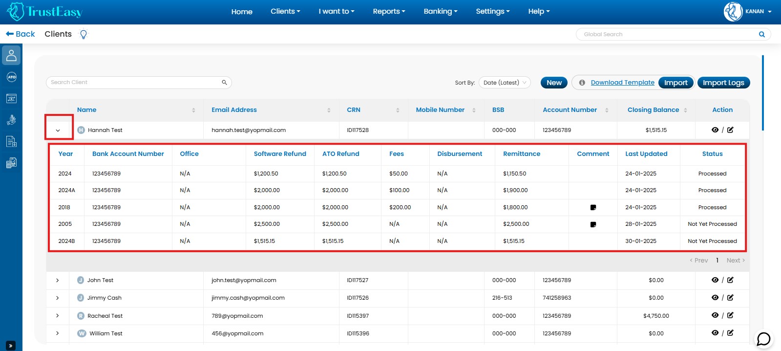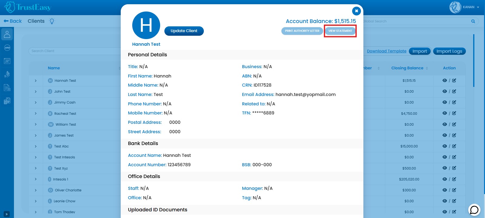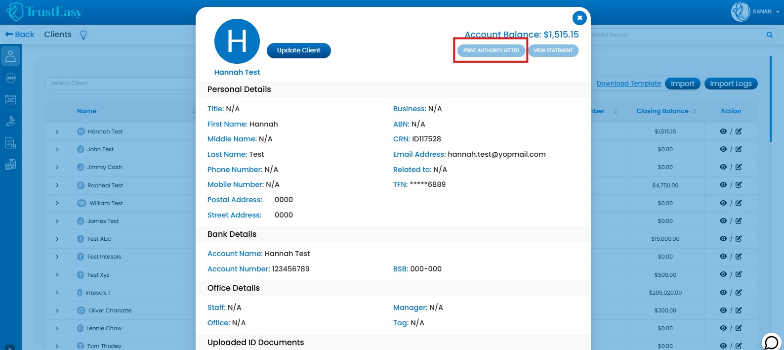 After the import process is complete, take a moment to review the imported client data. You can make any necessary updates or changes within TrustEasy as needed and one such update is the tax file number update.