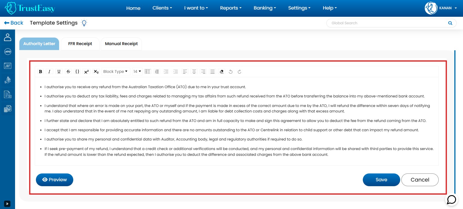 - Customizing Letter Content:Access Template Settings: Go to “Settings” -> “Template Settings” to customize the authority letter template.