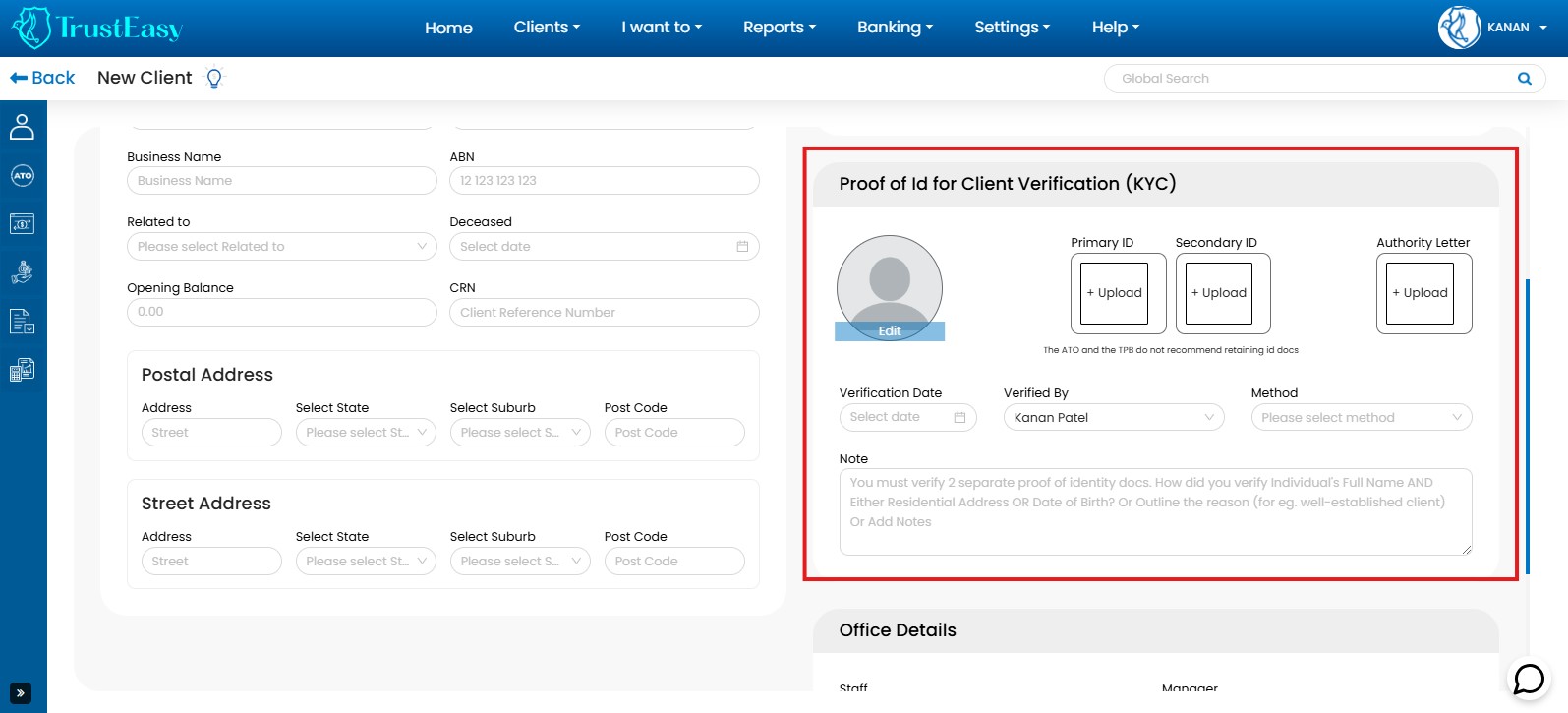 By entering multiple office details in TrustEasy, you can manage and keep track of different office locations within your organization. In the client’s history, you will be able to see which office processed the refund in the past.
