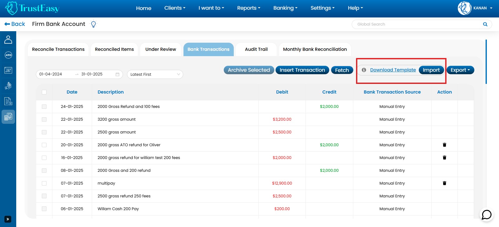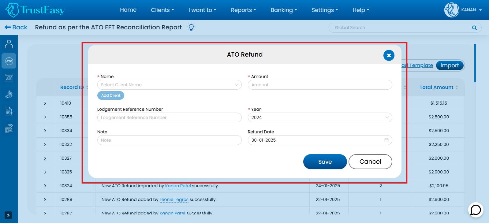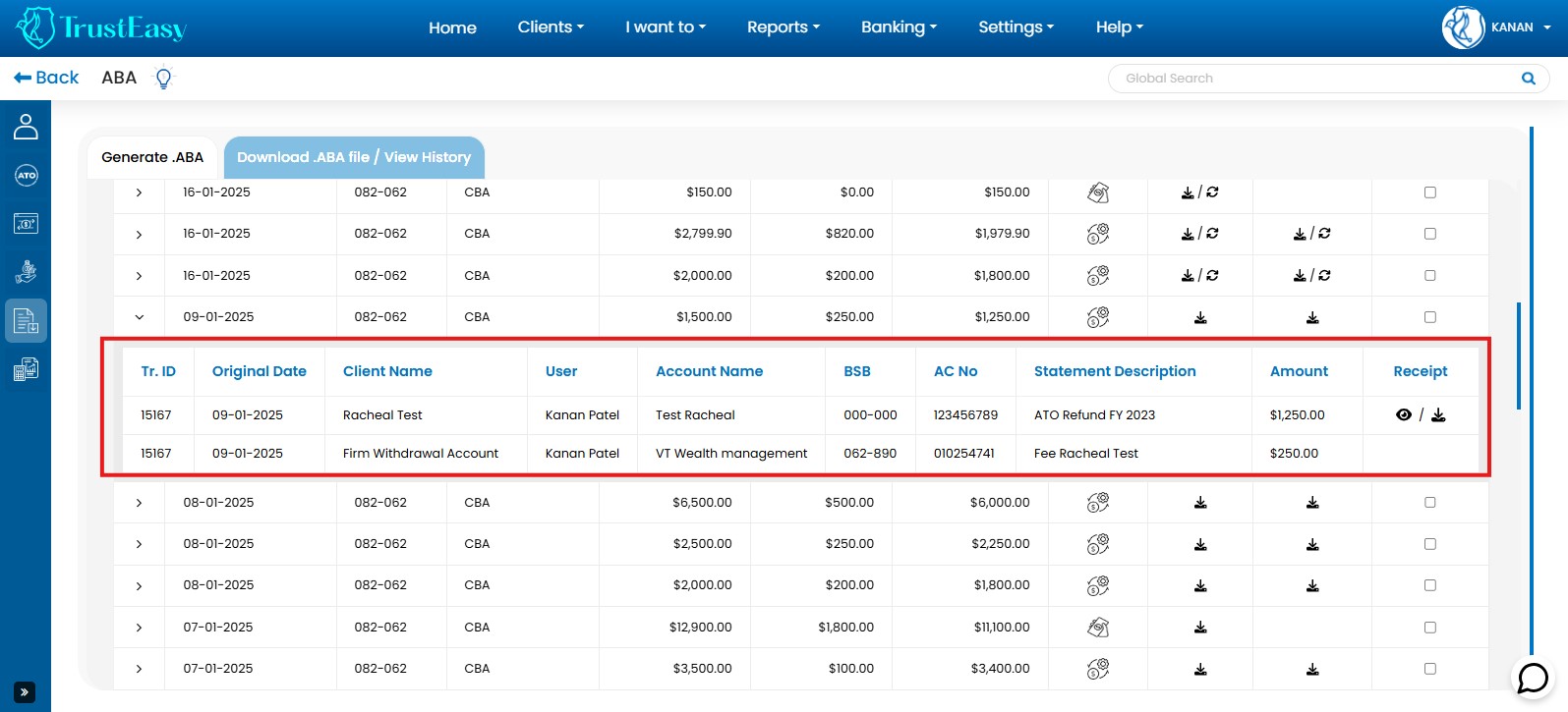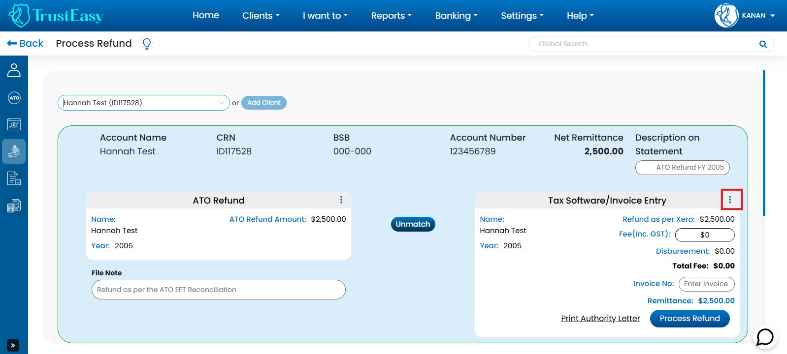 By utilizing these dedicated features, you can efficiently record trust transactions within TrustEasy, ensuring accurate accounting and reconciliation. This is particularly helpful when dealing with refunds or payments to entities like the ATO.