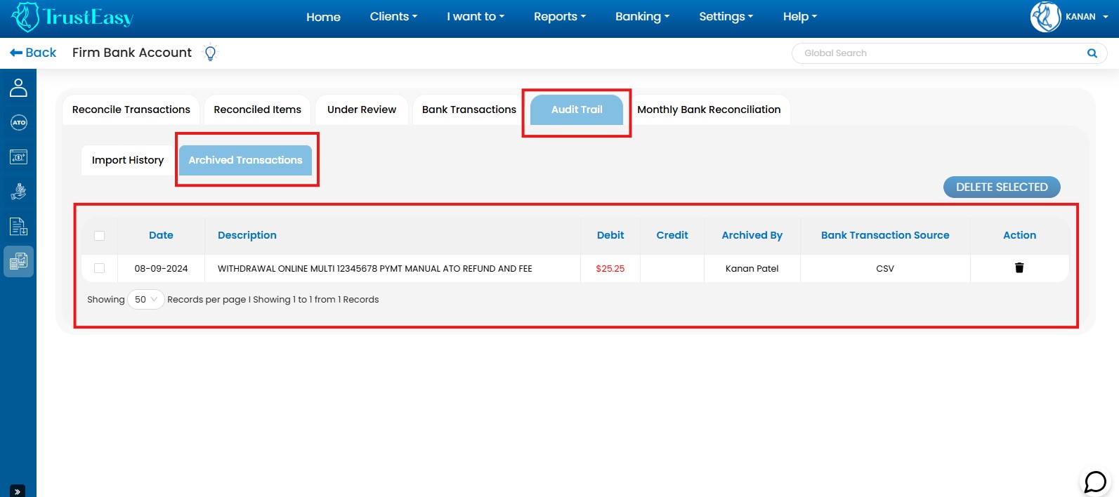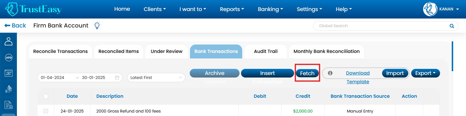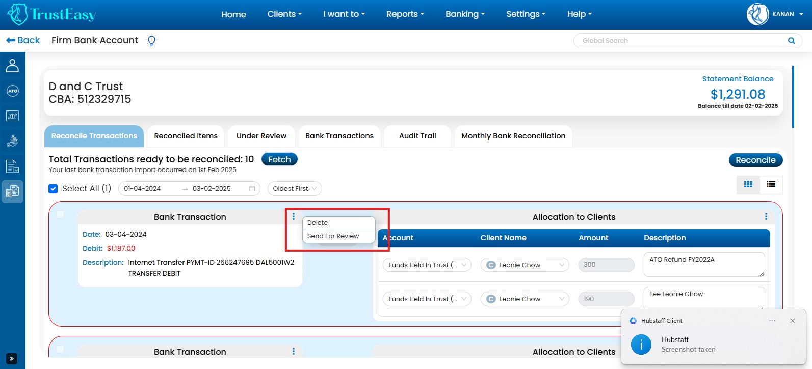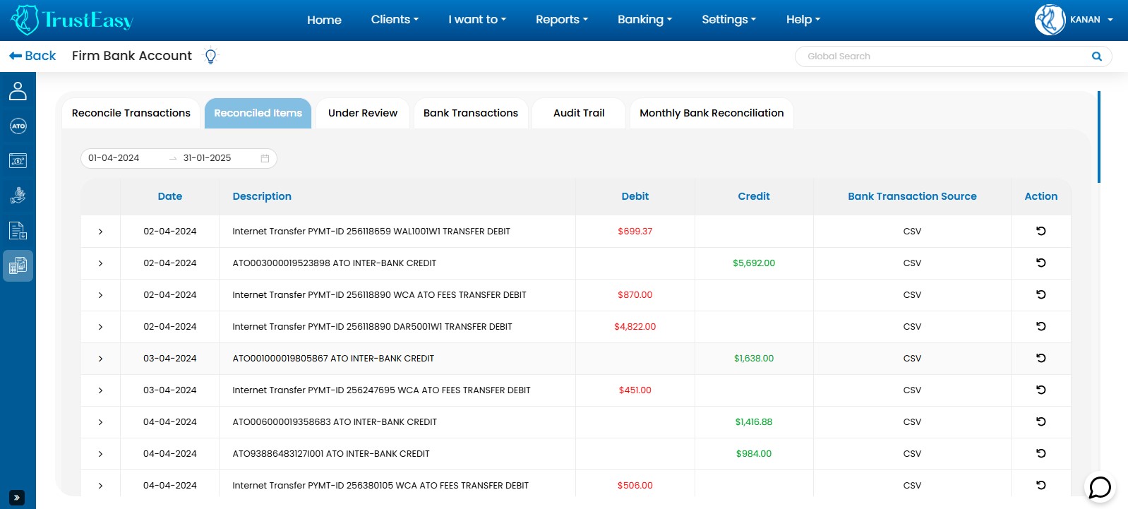 By utilizing these dedicated features, you can efficiently record trust transactions within TrustEasy, ensuring accurate accounting and reconciliation. This is particularly helpful when dealing with refunds or payments to entities like the ATO.