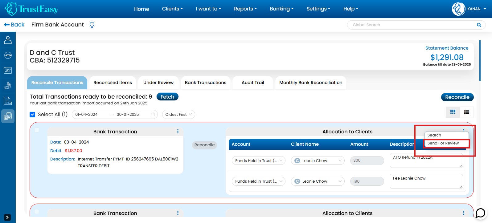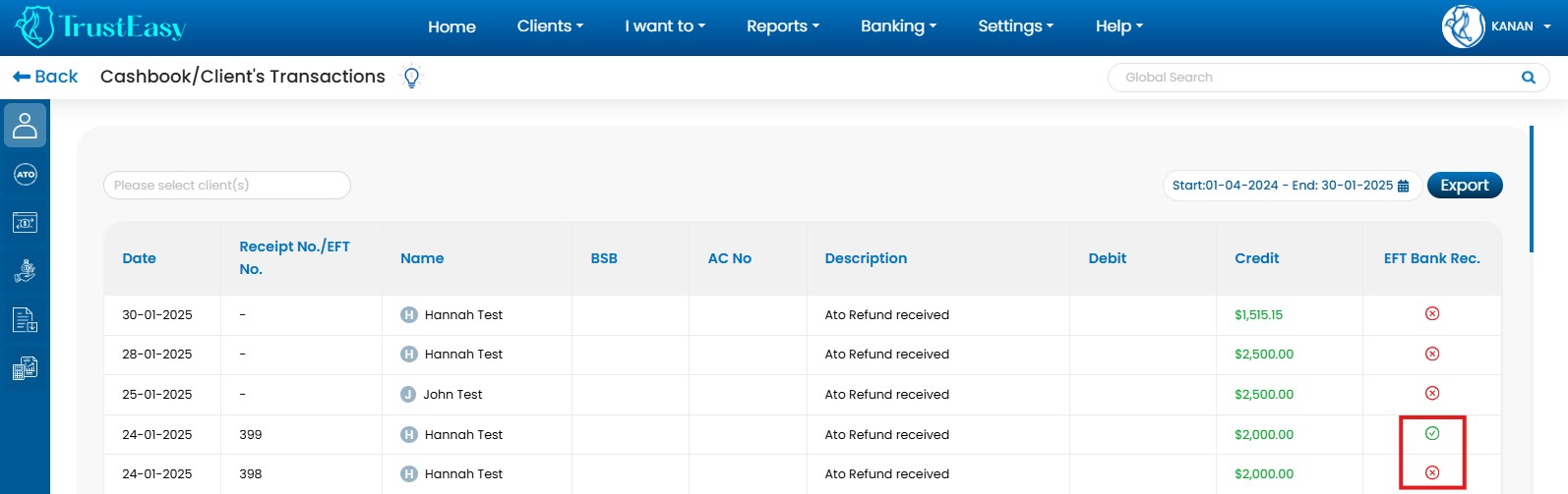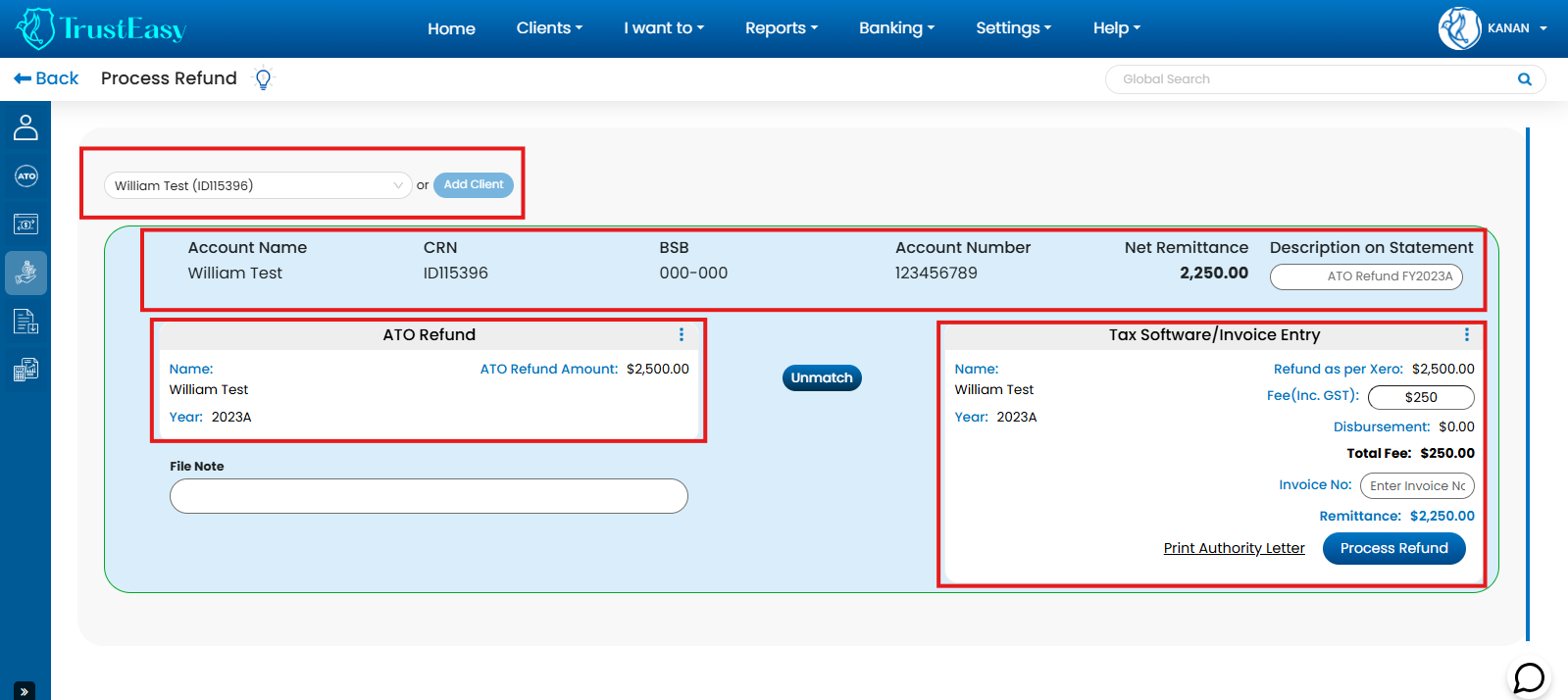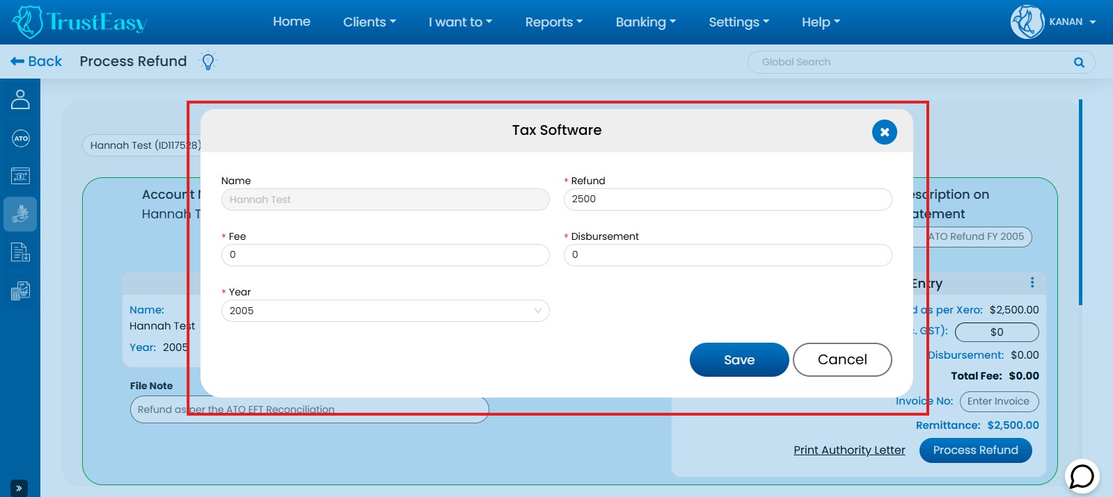 TrustEasy is a trust account management software designed for Tax Practitioners to efficiently streamline FFR(Fee From Refund) processing by automating fee calculations and generating separate payment files for clients and practitioners. This, along with features like automated bank feeds and reconciliation, enhances compliance and reduces the risk of errors. By automating tasks and improving efficiency, TrustEasy allows accounting firms to focus on higher-value client services.