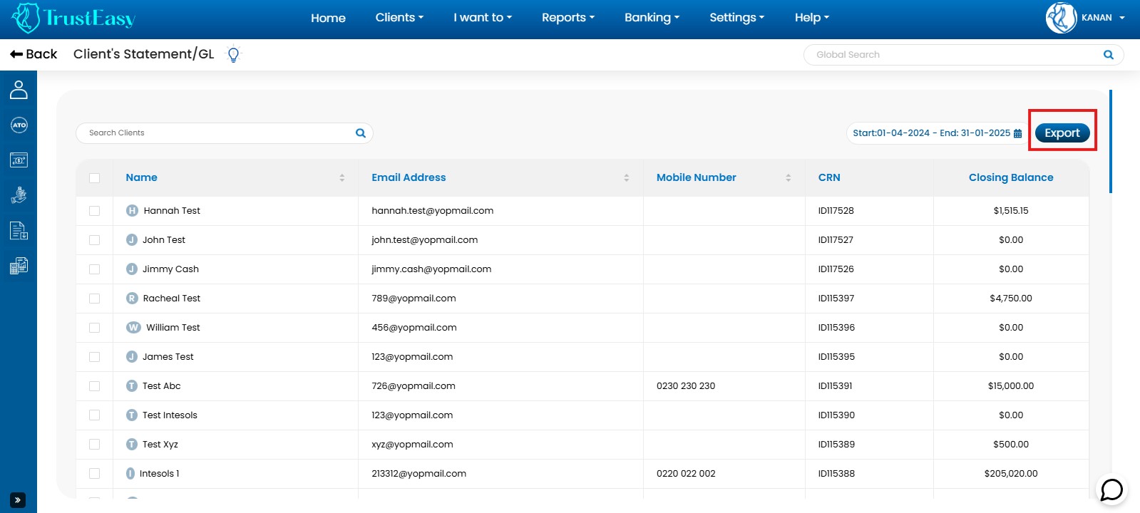 - Go to the “Clients” area in TrustEasy.