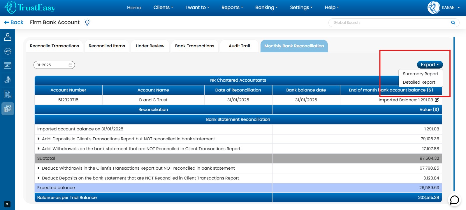 - Statutory Trust Account:TrustEasy is designed for managing a statutory trust account. Ensure that account entries reflect this specific account type. “Funds Held in Trust” is typically a pre-filled account for reconciliation purposes.