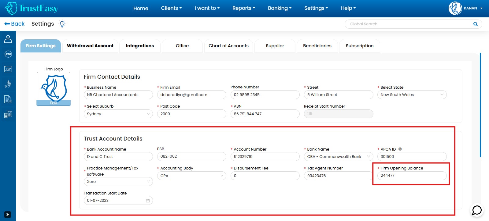 By completing these steps, you ensure accurate firm information within TrustEasy, which is crucial for smooth and efficient trust account management.