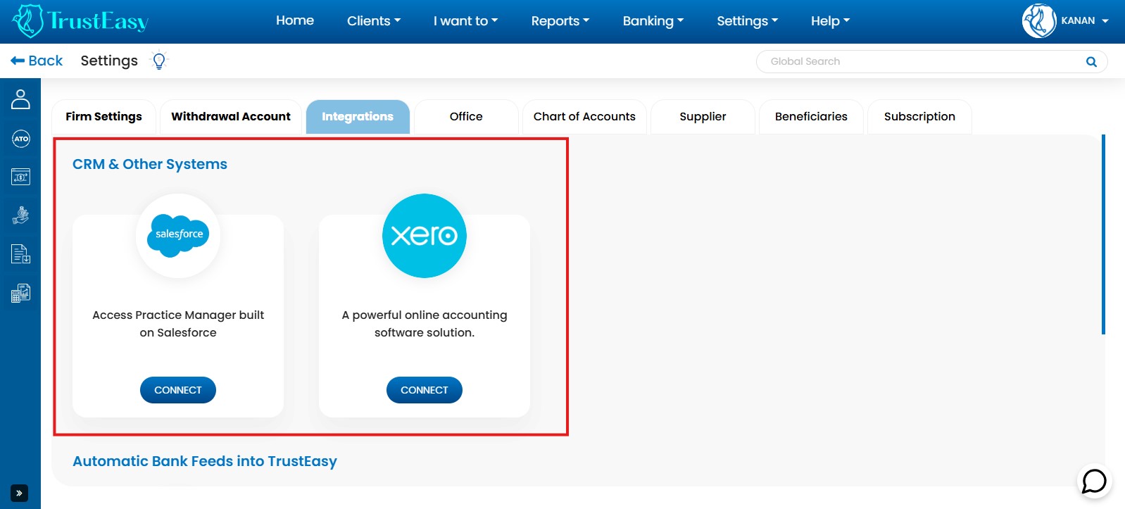 Follow these steps to connect TrustEasy to Xero Practice Manager (XPM) account: