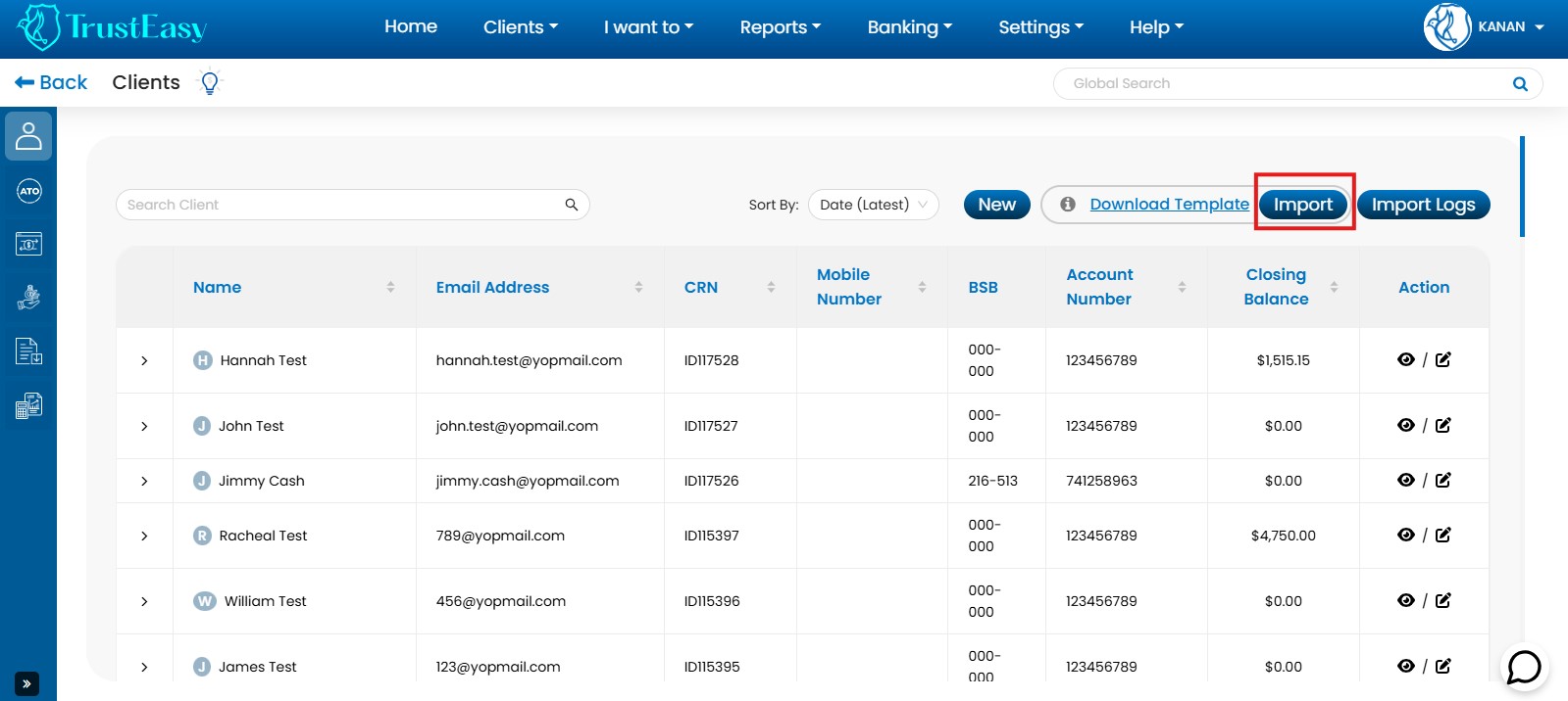 - Import Logs:View a list of imported and non-imported clients in the Import Logs.
