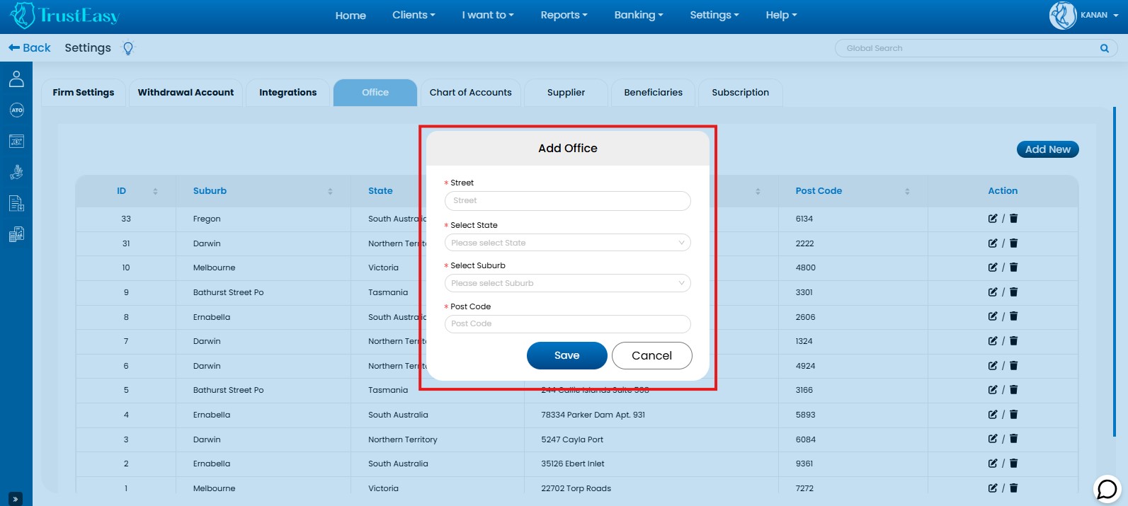 Yes, in TrustEasy you have the option to enter multiple office details. You can do this by following these steps :