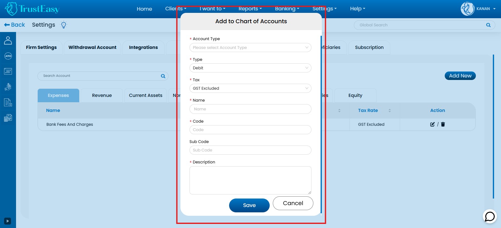 By following these steps, you can effectively manage and customize the Chart of Accounts within TrustEasy to meet your specific accounting needs.